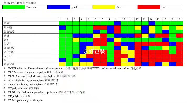 塑料桶耐腐蝕性能對照表
